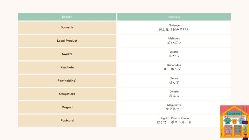 おみやげを買う時に使う言葉、フレーズをまとめました。