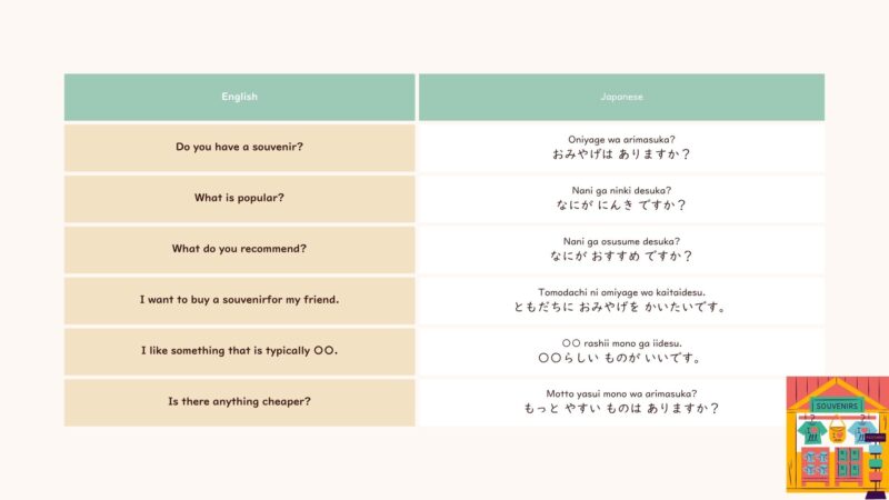You can learn Japanese phrases when you buy souvenirs.
